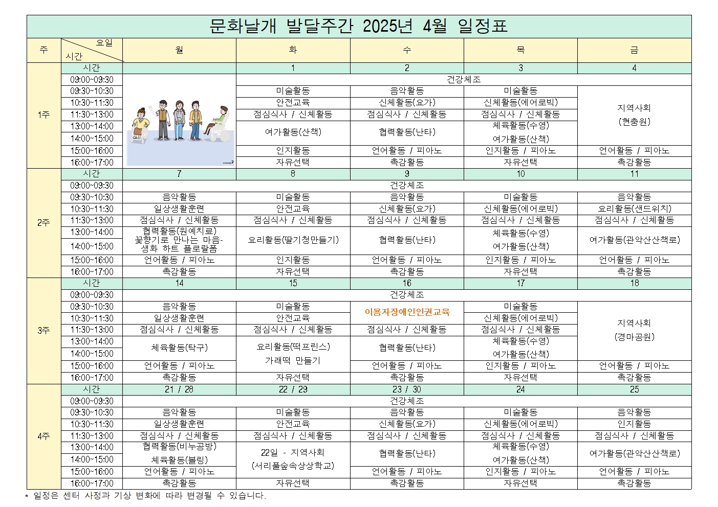 [발달주간] 주간활동 4월 시간표